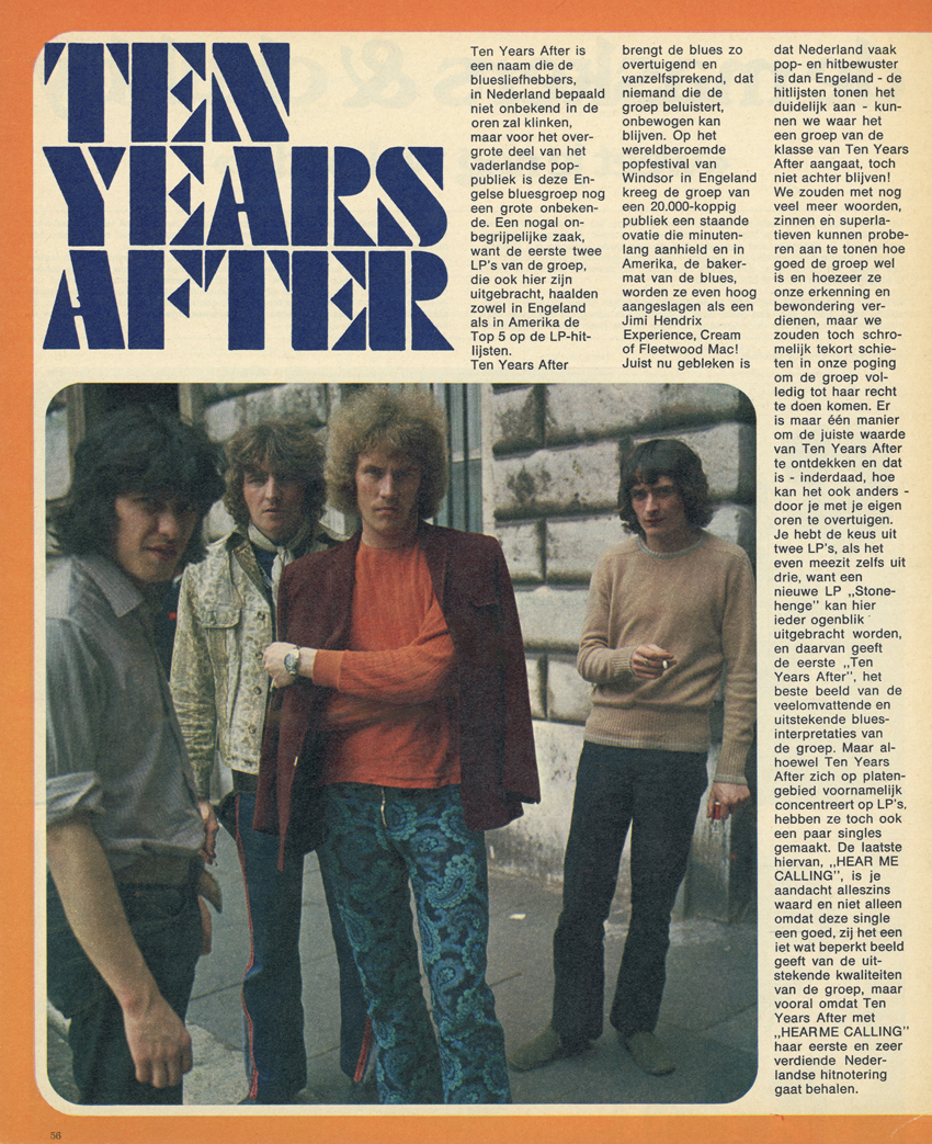 While not especially different  from other electric blues groups, Ten Years After do rank with the more talented ones. Their sound is exciting; their music has texture. Ten Years After has the potential of a hot new group on the horizon.